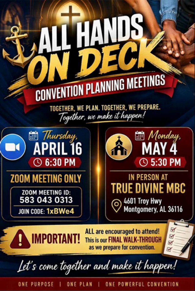 The last planning meeting will be held at True Divine Baptist Church